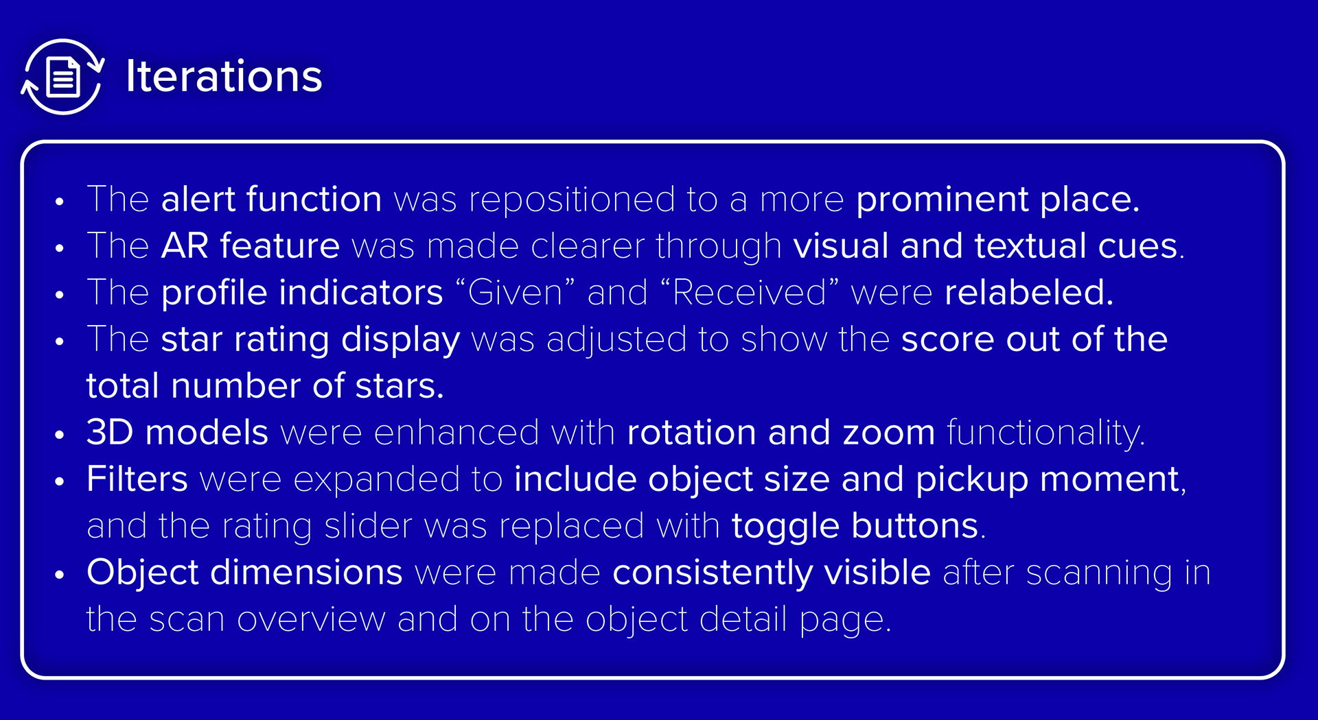 The object page was refined to better highlight key information such as object details, measurements, and pickup options. Improvements also strengthened navigation and the interaction with the 3D model, helping users evaluate items before requesting them.