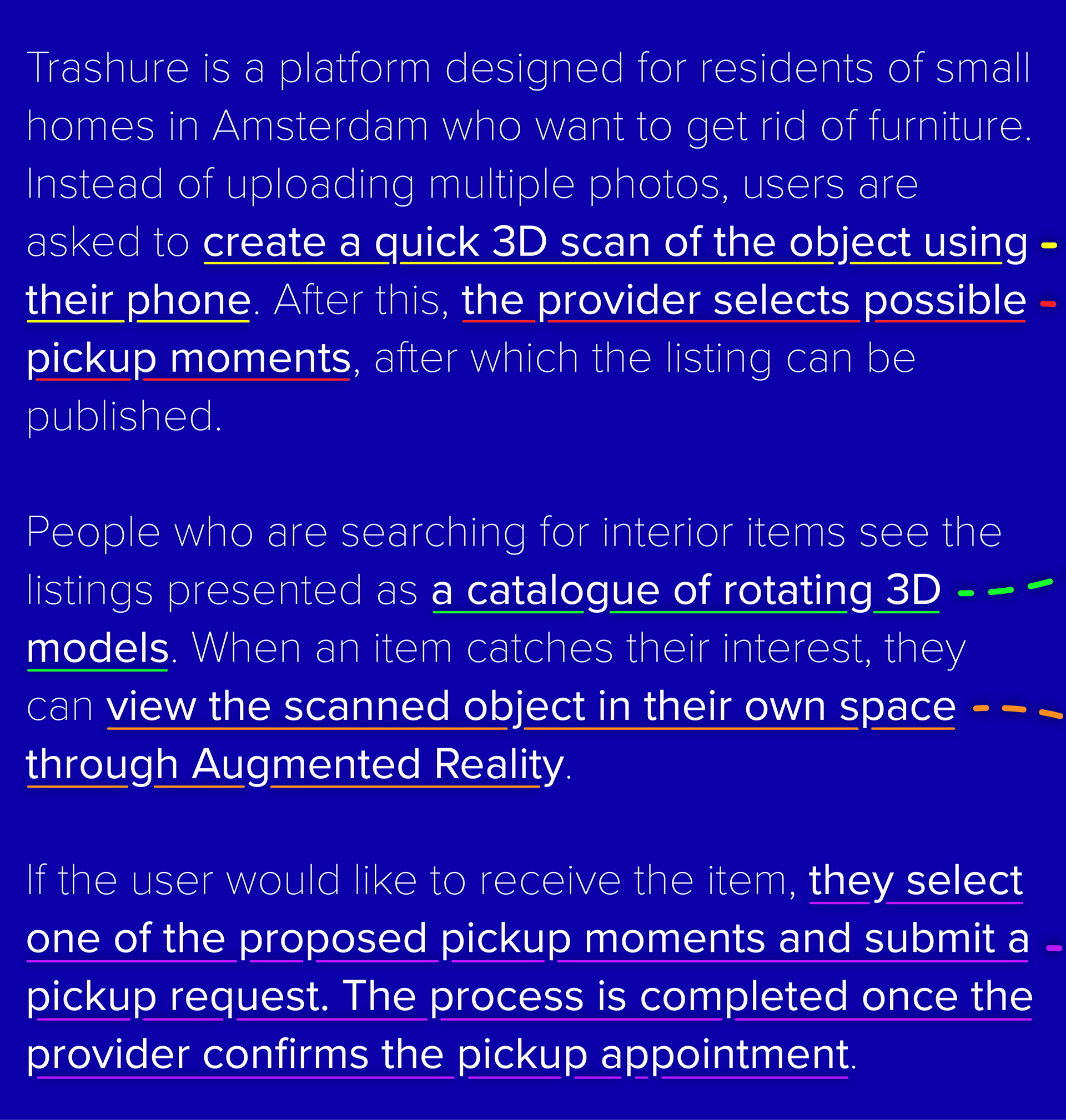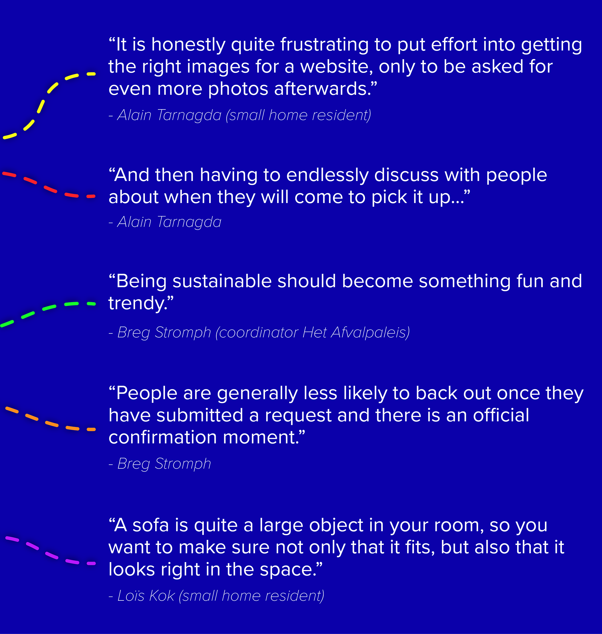 How can an interactive digital product facilitate that still usable interior items from residents of small homes in Amsterdam are transferred to interested fellow city residents, instead of being disposed of as bulky waste? At the same time, how can the platform ensure that the person who wants to discard the object can do so quickly, efficiently, and with minimal effort?
