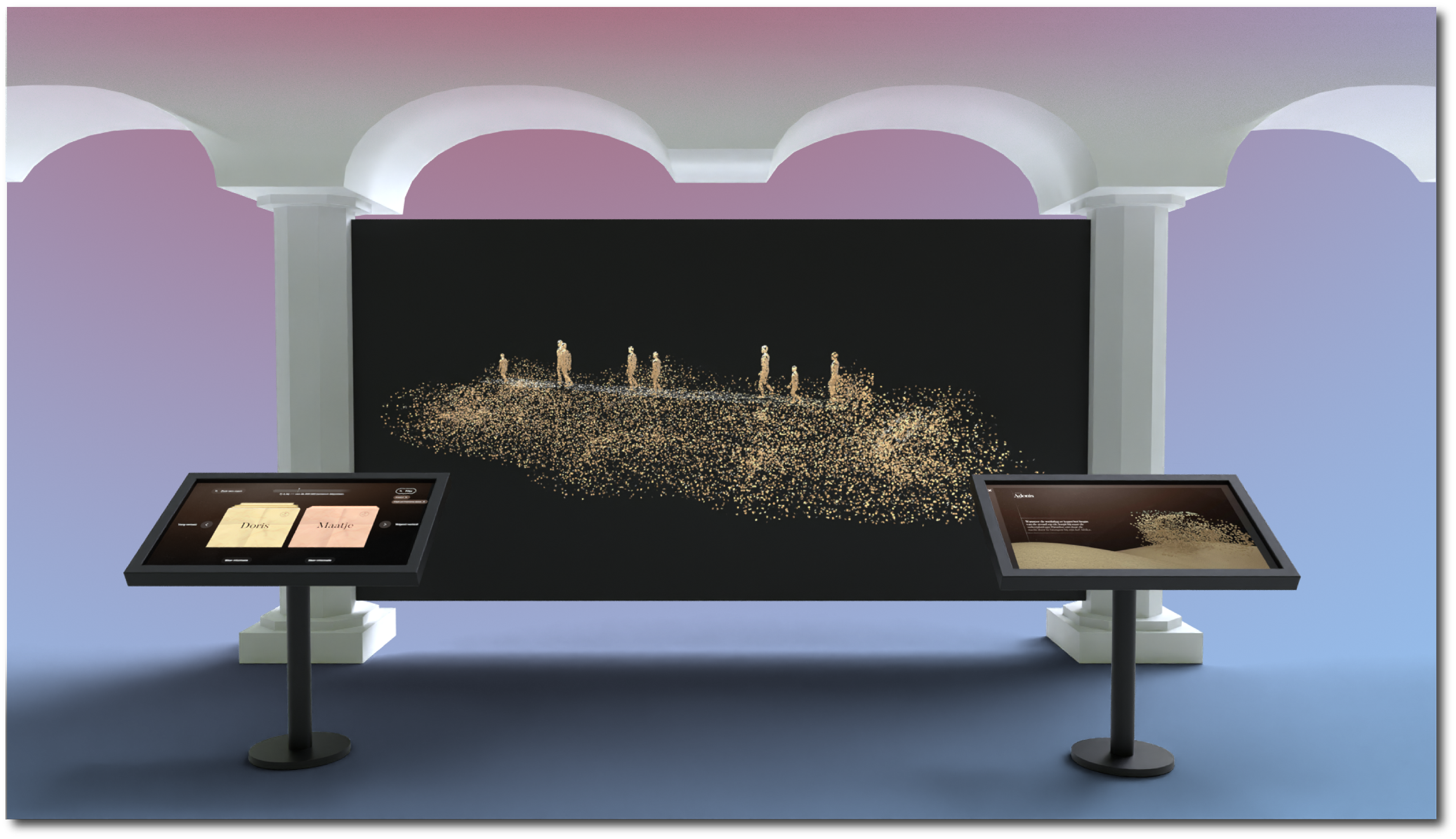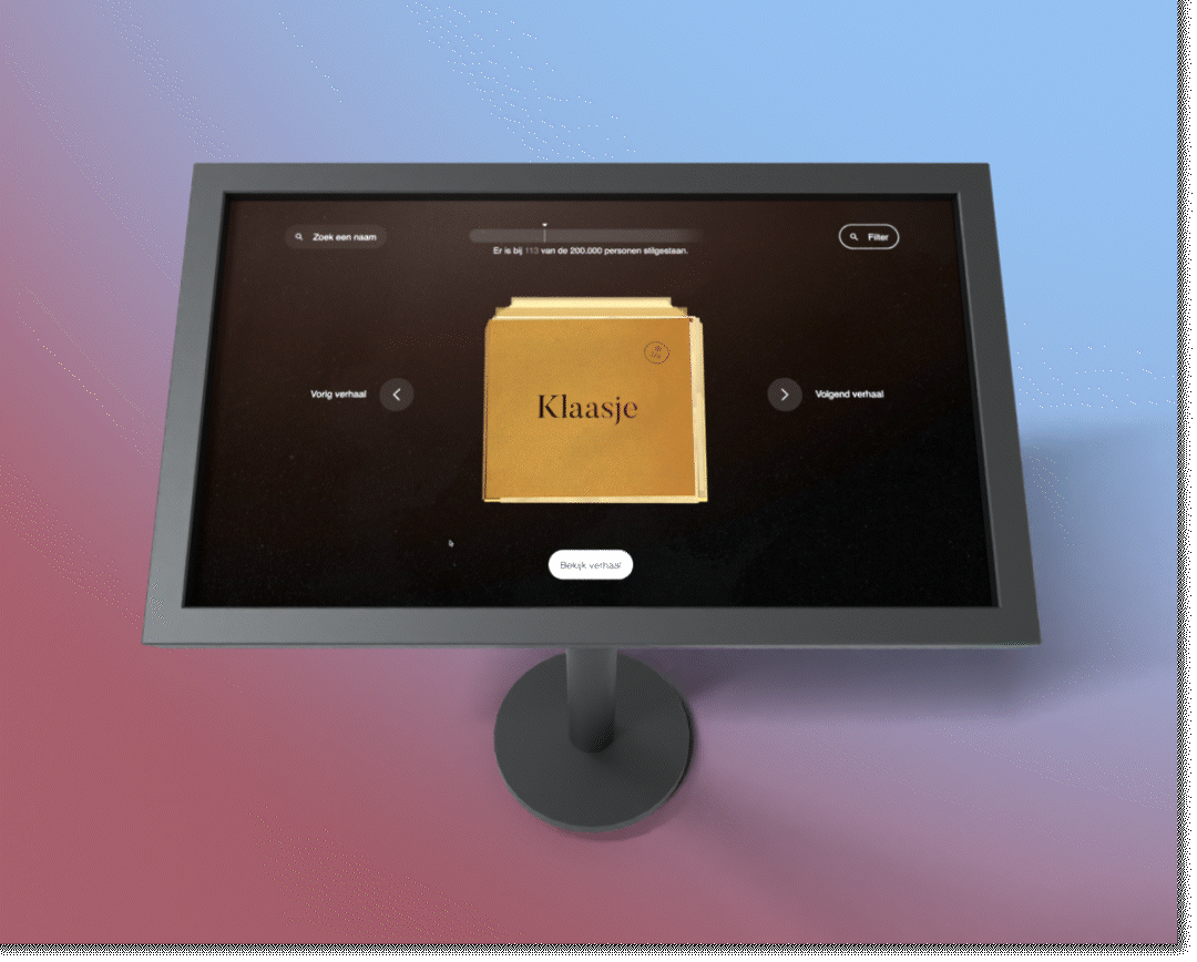 Visitors can search, filter and explore names via touchscreens that connect directly to the animation. When a visitor pauses on a person’s name for two seconds, their presence is marked as ‘seen’, contributing to a collective goal of acknowledging every individual.