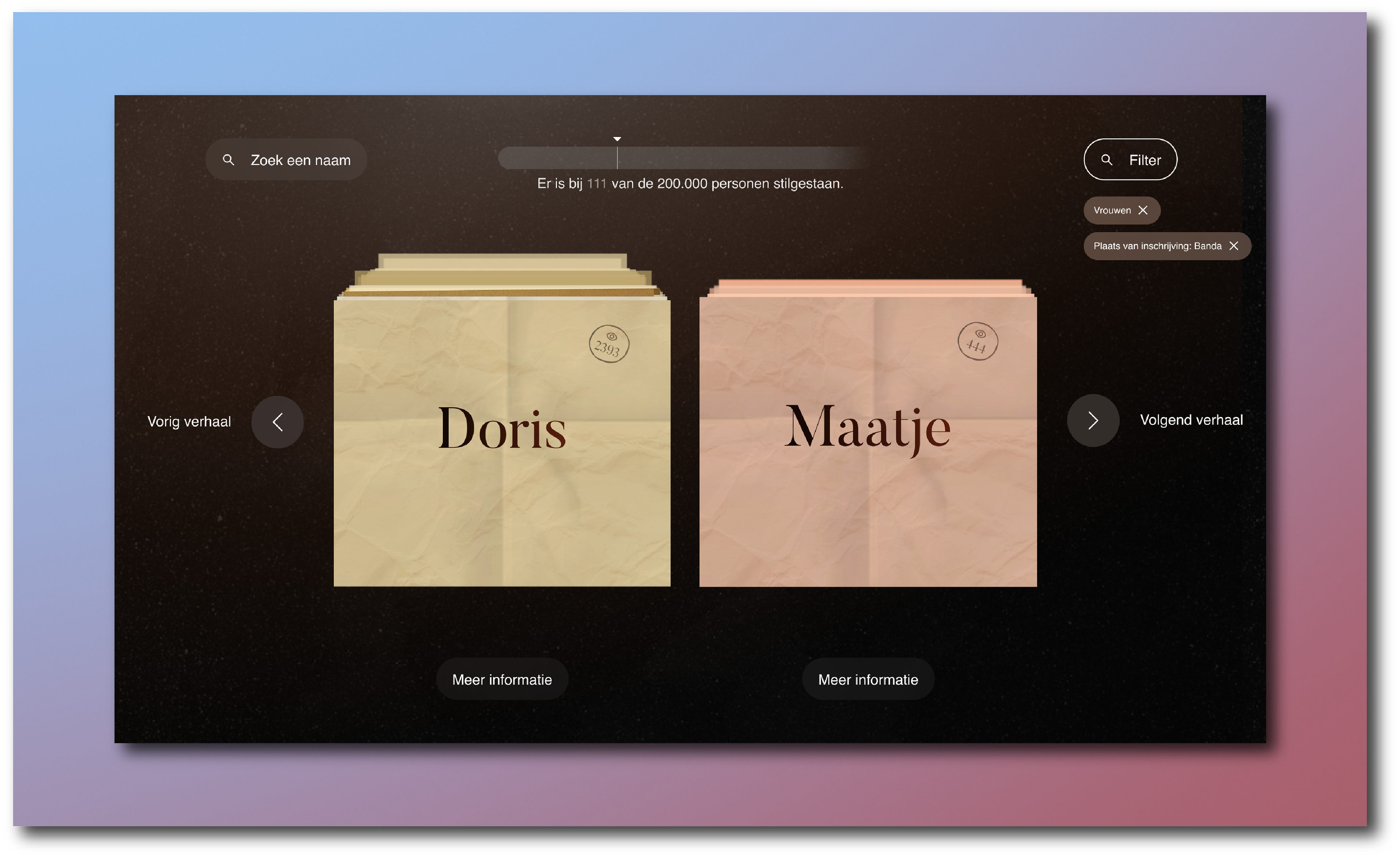 Some stories unfold through scrollytelling, creating a deeper emotional connection. By visually linking the data to human identity, the installation encourages reflection and remembrance of the people behind the numbers.